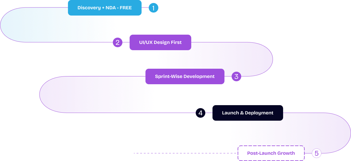 From concept to clickable UI, sprint-wise builds to post-launch growth — we’re with you all the way.
